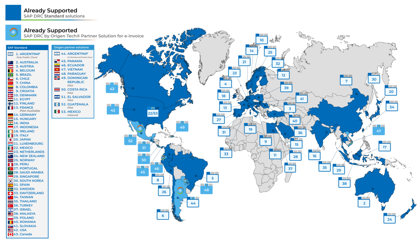 Característica para cumplir con los requisitos de facturas electrónicas de varios países de América Latina y otros países del mundo.